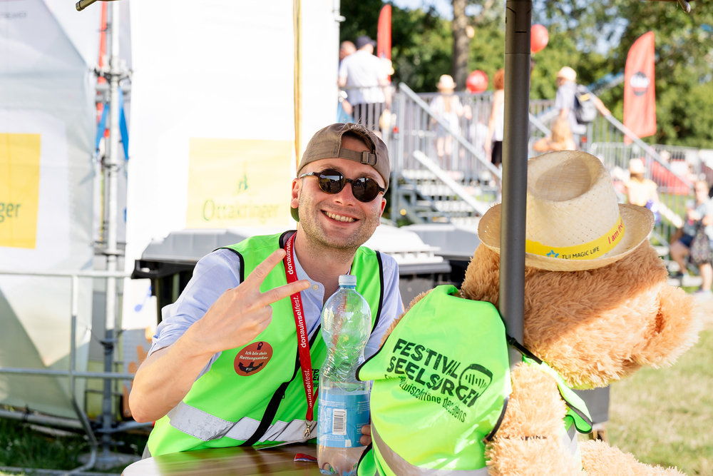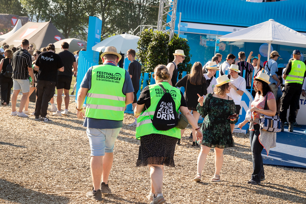 Das ökumenische Team der Festivalseelsorge, bestehend aus 40 speziell geschulten Seelsorgerinnen und Seelsorgern der Römisch-katholischen und Evangelischen Kirche, ist beim diesjährigen Donauinselfest unter dem Motto "Erzähl mir was, ich hör dir zu" im Einsatz. Die Seelsorger, erkennbar an grünen Warnwesten, bieten an einem festen Standort sowie mobil auf dem gesamten Festivalgelände kostenlose Unterstützung für alle Festivalgäste an, unabhängig von deren Religion oder Weltanschauung.Wir waren mit der Kamera dabei.